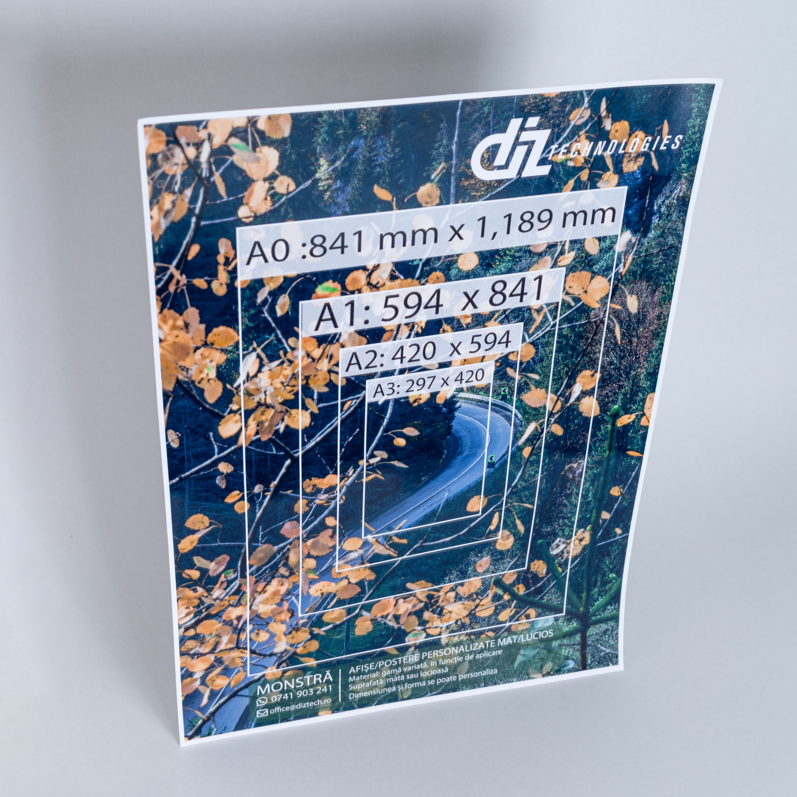 - Diverse dimensiuni și finisaje: Alege dintr-o gamă variată de dimensiuni și finisaje, cum ar fi afișele pe hârtie lucioasă, mată sau texturată, sau posterele montate pe suport rigid, pentru a se potrivi perfect cu estetica dorită.